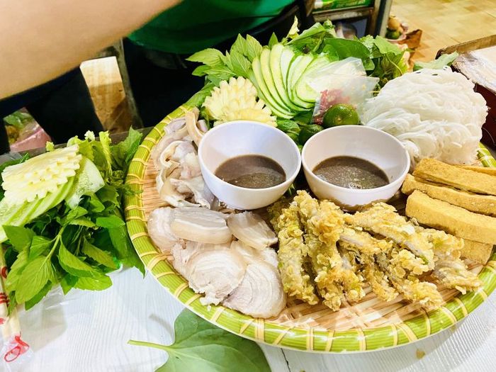 Bún Đậu Vi Diệu, located in Rạch Giá, Kiên Giang, is a well-known spot among food enthusiasts. It's a favorite for anyone craving bún đậu mắm tôm that's both delicious and affordable. The restaurant features a spacious interior, decorated with a vibrant green theme, making it easy to spot on Phạm Hùng Street. The bún đậu set here includes a generous assortment of ingredients such as crispy fried chả cốm, sausage, fried tofu, tender boiled pork, and fresh vegetables. The meat is perfectly cooked — tender and juicy, not dry or tough, and the portions are just right. For those who prefer something other than shrimp paste, fish sauce is also available. While enjoying your meal, you can relax and take in the street views, all while being served by friendly and attentive staff. If you're in Rạch Giá, don't miss the chance to try Bún Đậu Vi Diệu. The name might seem unusual, but the taste is truly miraculous.