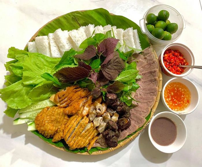 Bún Đậu Khánh Ơi is a popular spot for bún đậu mắm tôm enthusiasts in Rạch Giá. The restaurant offers three main portion sizes: 50,000 VND for a single serving, 100,000 VND for two people, and 150,000 VND for three. Each portion comes with an array of ingredients including chả cốm, pork leg, intestines, pig ears, tofu, and fresh greens, all neatly arranged on a tray. The highlight of Bún Đậu Khánh Ơi is its focus on fresh, homemade ingredients, with minimal fried foods, ensuring the meal remains light and healthy. The restaurant serves three types of dipping sauces: shrimp paste, fish sauce, and fermented shrimp paste, so everyone can enjoy their bún đậu. Additionally, each serving is paired with rice paper, allowing customers to roll their ingredients for an added layer of flavor. If you haven’t tried Bún Đậu Khánh Ơi yet, make sure to bring your friends and experience it—it’s a local favorite!