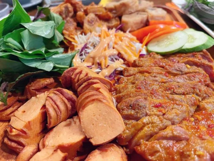 Lai Rai Quán is located at 45 Ly Phuc Man, District 7, Ho Chi Minh City. Open daily from 12 PM until late, the restaurant offers a wide selection of dishes, including grilled chicken feet, grilled pig’s intestines, fried tofu with lemongrass, and stewed pig’s stomach with pepper.