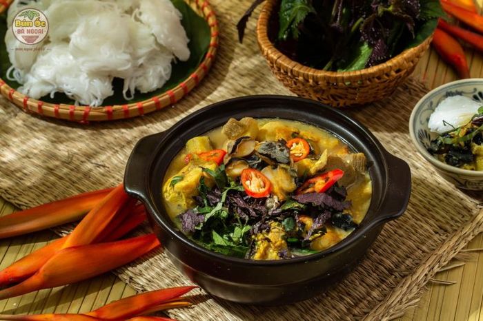 This is a humble eatery with a small indoor space and several sidewalk tables. The pot of steaming noodle soup always tempts passersby, and the owner is warm and quick, preparing each bowl with care. The best part about dining here is the comfortable atmosphere, the delicious food, and the incredibly fresh crab meat. You can even choose noodles with whole crab legs. Each bowl is packed with flavor, and you'll fall in love with the rich broth. Cô Ngà has built a strong reputation, and you can also take it to-go to enjoy your meal elsewhere.