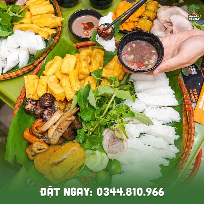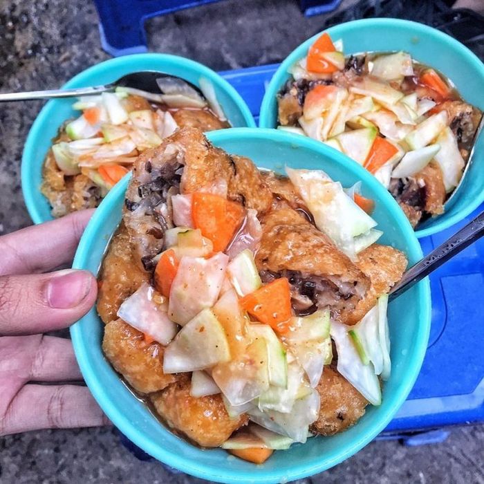 In particular, Cây Đa Fried Tofu with Shrimp Paste is probably the most famous spot for those who are die-hard fans of this dish. The fried tofu here is crisp on the outside, tender and fragrant on the inside. The real highlight, however, is the shrimp paste, which is imported all the way from Thanh Hoa. The shrimp paste has a unique, rich flavor that is difficult to match anywhere else. Additionally, all the ingredients here are carefully selected to ensure the freshest and most delicious experience: the vermicelli is perfectly cut into bite-sized pieces, while the tofu is soft on the inside and crispy on the outside, hot, fatty, and irresistible.