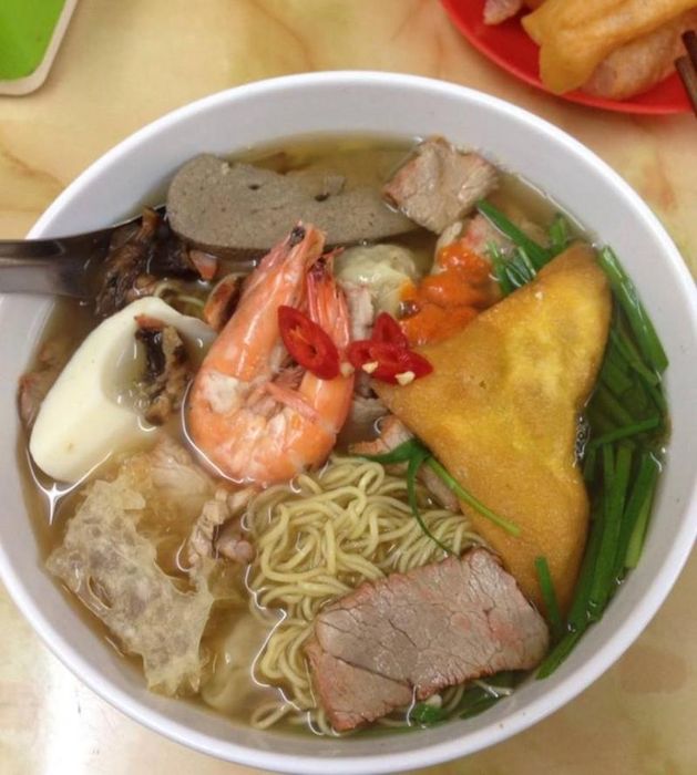 Mai Hắc Đế Wonton Noodles is one of the top spots for delicious wonton noodles in Hanoi, popular among food connoisseurs. Although the bowl may not be overflowing, all the ingredients are fresh, perfectly seasoned, and served steaming hot. The noodles, though soaked in hot water, maintain their chewy texture. Each bowl is packed with shrimp, tender roast pork, golden fried dumplings, a boiled egg, liver, and fresh herbs. The noodles are aromatic and chewy, while the broth has a naturally sweet taste from shrimp and simmered bones, unlike the overpowering taste of MSG. Besides the regular dumplings and roast pork, they also serve steamed shrimp, which adds an extra layer of flavor to the dish.