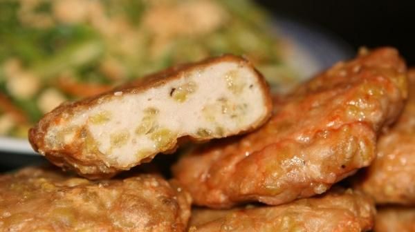 Tieu Quan Village (Nhué Duong Commune, Khoai Chau District, Hung Yen Province) is renowned for its unique chicken cake. To create this delicacy, the locals put a great deal of effort into preparation. The chicken used must be lean, with all tendons and bones removed, then chopped finely and pounded in a mortar. Once nearly finished, egg yolk, premium fish sauce, pepper, ginger, and diced pork fat are added and mixed further.