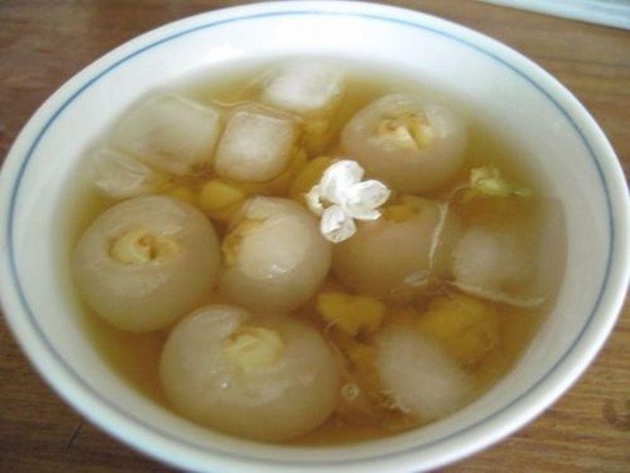 Lotus Seed and Longan Sweet Soup from Pho Hien (Hung Yen) was once a royal dessert. The key ingredients of this royal dish are fresh lotus seeds and longan fruits from Pho Hien, a variety known for its fragrant, plump flesh, and crisp, sweet taste. While the process of making this soup is relatively simple, it requires great skill, especially when it comes to separating the longan's flesh. Traditionally, skilled cooks use a sharp, pointed knife, similar to a betel nut cutter, to carefully remove the longan flesh without tearing it. This ensures that the lotus seed is perfectly encased in the longan, allowing the flavors to meld beautifully.