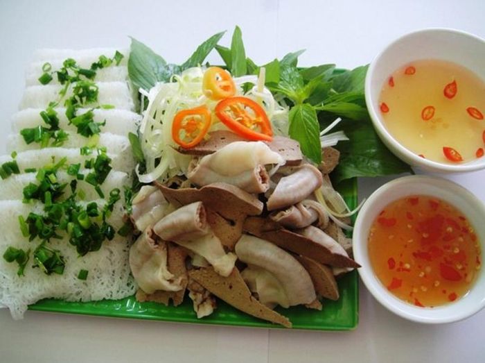 This is a staple dish in many Ninh Thuan households, commonly enjoyed for breakfast. Simple and affordable, a plate typically costs between 20,000 and 30,000 VND. The dish features a plate of fine, smooth, and fragrant rice vermicelli, served with pork entrails cut into bite-sized pieces, accompanied by a small bowl of garlic-chili fish sauce. While basic, the flavor is incredibly unique and delicious, leaving a lasting impression on anyone who tries it.