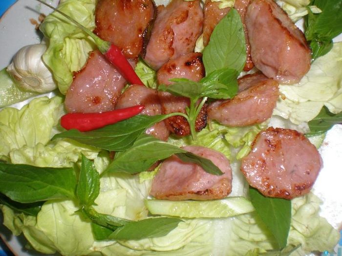 Phan Rang Fermented Pork is considered a simple yet deeply flavorful local specialty, filled with warmth and character. Its appearance is enticing, but it’s the taste that truly sets it apart – a perfect balance of tangy, crispy, chewy, and spicy, with the peppery kick and subtle aroma of guava leaves blending seamlessly. Made from fermented pork and rice powder, this dish is seasoned with fish sauce, salt, sugar, pepper, and guava leaves, then tightly wrapped in banana leaves and secured with rubber bands, following a time-honored recipe that gives it a unique charm, highly appreciated by locals.