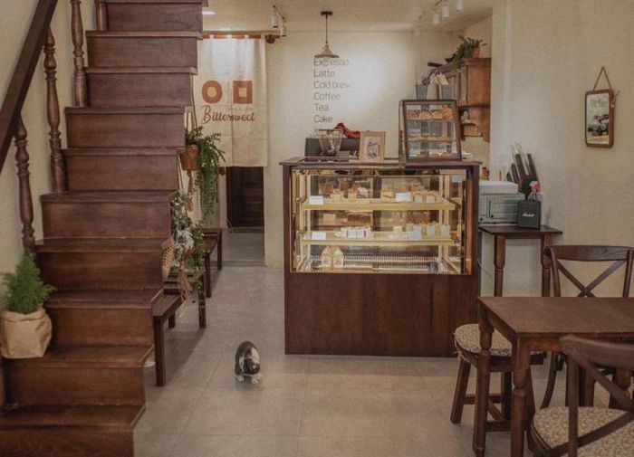 A cozy house with a rustic wooden vintage tone blending with nature, called Bittersweet Cakery Cafe, has become a popular spot for many young people in Saigon. The vintage Scandinavian interior design with wooden furniture creates a nostalgic atmosphere. If you're tired of the noisy streets, let Homenay guide you to Bittersweet Cakery Cafe, a hidden gem nestled in a peaceful alley in downtown Saigon. Here, you can enjoy a cup of coffee and a small, fragrant cake.