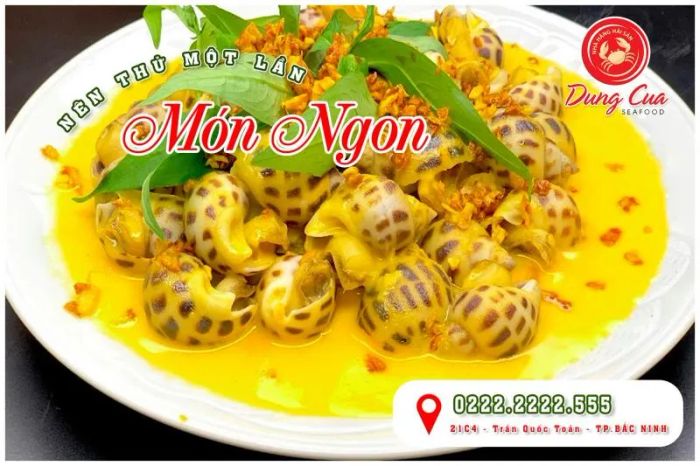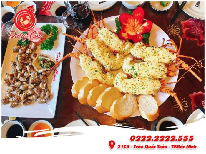 Dung Cua Seafood Restaurant is your go-to destination for fresh seafood, offering both wholesale and retail options in Bac Ninh. We bring you the finest live seafood every day! Step into Dung Cua - a seafood paradise featuring a wide variety of top-quality, fresh seafood that will never disappoint you! Our head chef, hailing from Hong Kong, has years of expertise in crafting exceptional dishes, delivering flavors that are Sweet, Fragrant, Crispy, and Purely Delicious. With an upscale, elegant setting, we offer everything from intimate tables to large spaces, and even VIP rooms for a private dining experience. Our team is dedicated to providing exceptional and personalized service.