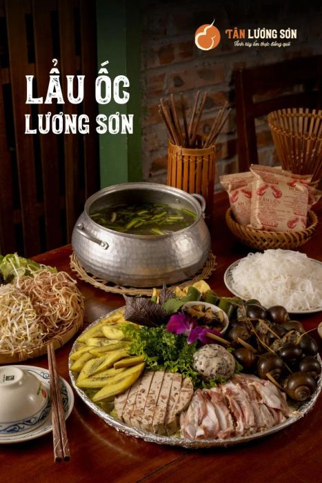 Tan Luong Son Quan Bac Ninh is one of the largest restaurants in Bac Ninh. The restaurant specializes in a variety of dishes such as: roasted chicken, young beef, wild boar, river fish, goose (9 different preparations), and many other delicious dishes including hotpots like crab noodle soup with beef brisket, Luong Son snails, spicy frog hotpot, fish hotpot, chicken hotpot, and beef hotpot. The rich flavors blend beautifully with the fragrant broths. A signature dish is the rich and tasty quail rice, which is adored by all ages who visit the restaurant.