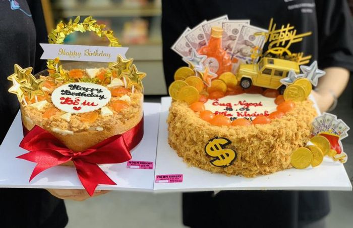 The cakes are aromatic and freshly made daily, ensuring a delightful taste. The sponge cakes at Moon Bakery are generously portioned, so you'll have plenty to enjoy. The cake base is super soft, fluffy, and smooth, with a light fragrance that makes it easy to eat without feeling dry. Here, you can find a variety of sponge cakes, including cream cakes for birthdays, salted egg sponge cakes, and rainbow roll cakes.
