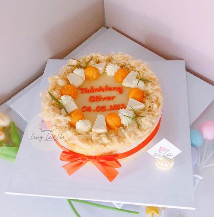 If you're on the hunt for delicious and visually stunning sponge cakes in Dong Nai, don't miss Tiny Turtle. They offer a wide variety of sponge cakes, from savory to sweet, including birthday cakes, salted egg sponge cakes, tiramisu, and corn cakes. Their salted egg sponge cake is a best-seller, featuring a moist, fluffy base that blends perfectly with the rich egg yolk sauce and savory floss, leaving a lasting impression. These cakes are topped with a unique combination of egg and cheese sauces, providing a balanced sweetness for those who prefer a mild flavor.