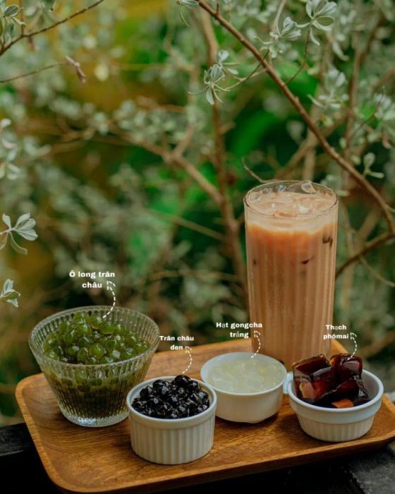 Mây Coffee & Tea quickly wins over customers with its nature-inspired decor. Upon entering, you’ll find numerous potted plants creating a refreshing and eco-friendly atmosphere. The shop's decoration is simple yet charming, with wooden furniture and fresh greenery. The milk teas here are rich and aromatic, leaving a delightful aftertaste in your throat. A standout feature of all the milk teas here is the use of brown sugar, which enhances the variety of flavors. The shop prioritizes fresh, quality ingredients, selecting only the best tea leaves.