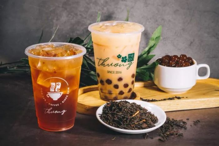 The name itself, Thương Milk Tea, evokes a warm, welcoming atmosphere. Like many other tea shops, it focuses on creating an elegant and cozy setting. The drink menu is incredibly diverse, offering a variety of milk teas in different flavors such as matcha, chocolate, caramel coffee, and black tea, ensuring your evening becomes much more special and romantic.
