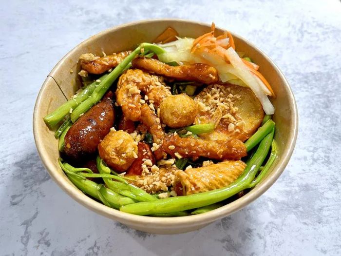 Fried cake (Bot Chien) is a beloved dish with Chinese roots, especially popular in Bien Hoa. This simple yet delicious dish is made of fried flour, scrambled eggs, grated papaya, stir-fried onions or chives, and soy sauce, making it a tasty and satisfying treat. One of the best spots to enjoy this dish is at Hanh Phuoc 2 Fried Cake, located at 22 Phan Dinh Phung, Thanh Binh, Bien Hoa. You can enjoy this humble but tasty dish without breaking the bank.