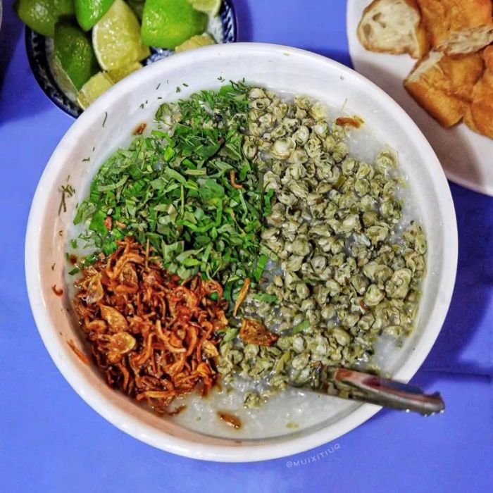 The porridge here is just right—not too thick nor too watery—packed with the rich, sweet taste of clams. The food is top-notch, but the prices are affordable, with free iced tea included. Fresh Clam Porridge by Ms. Tươi ensures food hygiene and safety without harmful additives, which is why it’s so popular. Over the years, with its consistent quality, this place has earned more and more affection from its loyal customers.