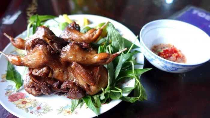 The Ho Nai area in Bien Hoa City is well-known for its signature fried buttered quail. The rich butter flavor and tender, melt-in-your-mouth quail are unforgettable. This dish is a beloved snack among locals and a must-try when visiting Bien Hoa. One of the most famous spots for this treat is Fried Quail Ho Nai, where the small quails are perfectly fried in butter, crispy on the outside, and flavorful inside. With a side of salt and pepper for dipping, you’ll soon find yourself craving more after just one taste.