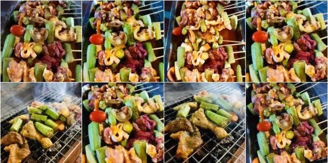 Xiên Que Hang Me has long been a popular snack in Bien Hoa, loved by locals, especially teenagers. The skewers here offer a variety of options such as grilled shrimp, skewered meats, chicken gizzards, ostrich, octopus, and beef wrapped in betel leaves, giving customers a wide range of choices at very reasonable prices. The fresh ingredients ensure that everything remains tender and juicy, and the unique marinade enhances the flavors of each skewer.