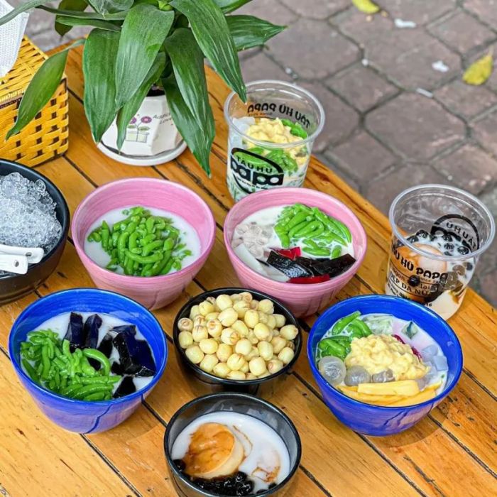 PaPa Tofu is a favorite dish among the youth of Bien Hoa. The flavor is light and refreshing, paired with visually appealing toppings that tantalize the taste buds. They promise to use fresh ingredients, with no chalky additives. It's delicious and not overwhelming, especially the flan made from soybeans, which is an unusual yet exciting taste.