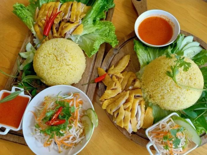 Located on Cua Bac Street, Cua Bac Grilled Chicken & Skewered Meat Rice (No. 2 Cua Bac) has become a familiar spot for both locals and tourists visiting Hanoi. Though the restaurant isn’t very large, it’s clean, tidy, and well-maintained. Their chicken rice is delicious, with sticky, golden rice that’s visually appealing. The chicken is perfectly boiled, tender, and shredded, mixed with just the right amount of seasoning. In addition to chicken rice, they offer other chicken dishes such as crispy fried chicken, grilled chicken legs, and chicken meatballs. All dishes are flavorful and appealing, making it suitable for customers of all ages.