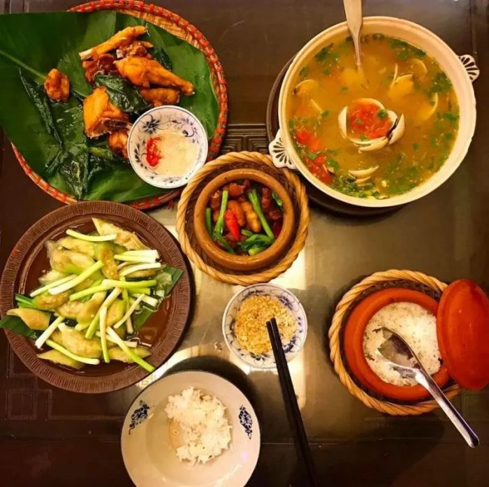 Entering 1946 Restaurant, guests are immediately struck by its nostalgic charm. The vintage decor permeates every corner of the restaurant, from the bowls and teapots to the wooden chairs and tables, making you feel as though you've stepped into Hanoi's past, nearly half a century ago. The restaurant is divided into smaller, private sections to offer quiet and intimate dining experiences for groups. True to its name, the restaurant serves classic traditional dishes, elevated to a fine dining level while maintaining their authentic flavors. Some standout dishes include jungle chicken, snakehead fish, carp stew with pickled mustard greens, pickled vegetables, bamboo shoots, salted pig’s trotters, and crab soup hotpot with beef. For a refreshing touch, try the fragrant corn beverage, subtly sweet and delightful to the palate.