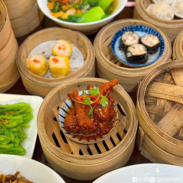 The dim sum wrappers here are praised for their chewy, tender texture, perfectly wrapping a filling of shrimp, meat, and vegetables that are steamed to perfection. If you prefer dishes with less oil, you can opt for the steamed dumplings (há cảo), which are among the restaurant's most popular items. Fungha Dimsum delights even the most discerning customers with its meticulous attention to detail in every dish, ensuring the highest quality possible. The sophisticated flavors will captivate your taste buds, offering a wide range of delightful sensations with every bite.