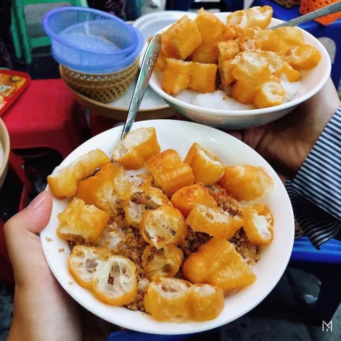 If you’re a fan of goose dishes, then Hanh Ngan De is a must-try spot. Aside from their delicious goose noodle soup, they also offer a flavorful goose noodle salad. The salad includes tender boiled goose meat, spicy bamboo shoots, grilled goose sausage, bean sprouts, roasted peanuts, fried shallots, and a variety of aromatic herbs, making for a mouthwatering combination. Additionally, there’s a bowl of goose blood pudding that’s just the right level of cooked, and never has that unpleasant taste. One bowl is sure to fill you up. The noodle soup is served with fresh, crispy bamboo shoots, perfectly balancing the flavors. If you’re visiting, don’t miss out on their famous crispy garlic-goose dish.