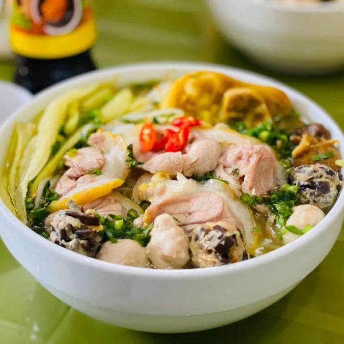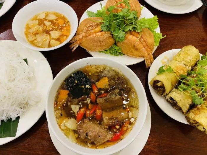 The menu at Hồng Thúy Dọc Mùng Noodles focuses solely on this dish, but it’s incredibly affordable and filling. Despite the low price, the bowl is generously packed with noodles, fresh herbs, and plenty of meat. The dish may be simple in presentation, but the flavor is far from ordinary. The broth strikes a perfect balance of tangy and savory with a slight sweetness from the bones, while the meatballs are soft and melt-in-your-mouth. After finishing this hearty bowl, you’ll be satisfied for the whole day.
