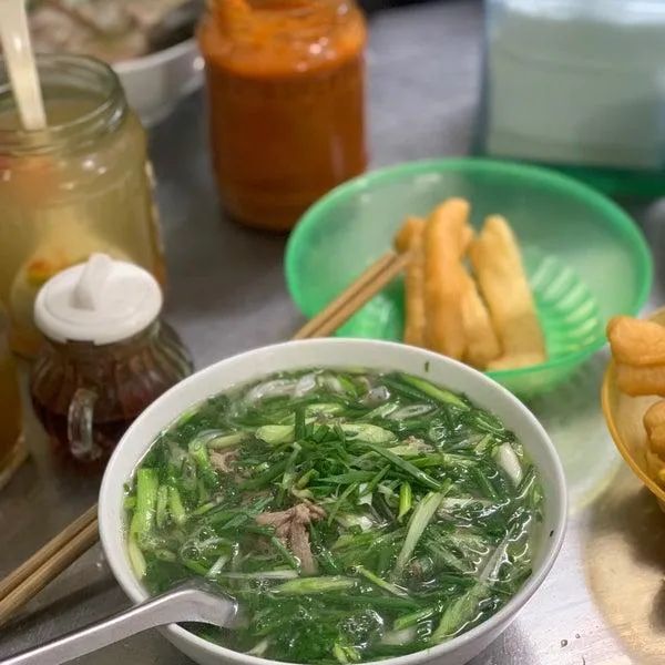 Dọc Mùng Noodles is a flavorful dish that truly represents Hanoi's culinary heritage. At Hồng Thúy Dọc Mùng Noodles, you'll experience this iconic dish in a beautifully prepared and special way. The broth is made by simmering bones for hours, resulting in a rich, savory flavor without being greasy. The dish comes with generous toppings, including pork meatballs, ribs, dọc mùng (a local vegetable), thinly sliced pork, and the star of the show—pig's tongue. The meatballs are tender and full of flavor, the ribs are juicy and tender, and the pig's tongue is a real treat. The dọc mùng is prepared meticulously, ensuring it won't leave an itchy sensation in your throat.