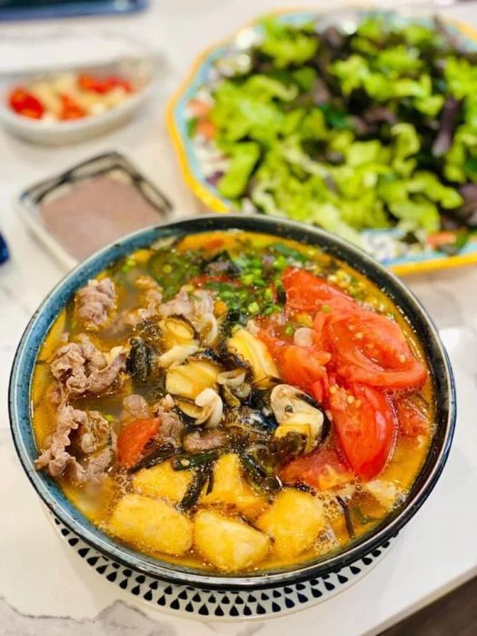 The standout feature of Bún Ốc Bà Lương is its hearty bowls of noodle soup, which leave you feeling full and satisfied. The broth is flavorful, with the snails, bananas, and tofu providing a delightful balance of taste. The restaurant also offers snail cakes, spring rolls, and even snail hotpot for those who want to indulge in a variety of flavors. The snail cakes have a distinctive spicy flavor with a crispy texture, and the snail rolls wrapped in betel leaves are even more fragrant and tender thanks to the betel leaf's aroma. For a complete meal, try their snail hotpot, which has a deliciously tangy and spicy broth that will stay in your memory long after the meal.
