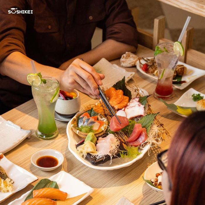 Sushi Kei is a well-known Japanese restaurant that caters to Vietnamese food lovers. The restaurant's name carries a special meaning, as 'Kei' in Japanese translates to happiness and joy. True to its name, Sushi Kei aims to bring guests a joyful and fulfilling experience with fresh and delicious Japanese dishes. The restaurant chain offers an extensive menu with over 200 unique and exquisite Japanese dishes. In addition to the delicious food, the restaurant's ambiance is a big plus, allowing guests to feel as if they are dining in Japan. Sushi Kei combines traditional and modern Japanese design elements, creating a sophisticated and elegant environment that reflects Japan's rich culture.