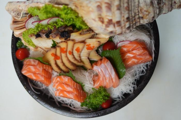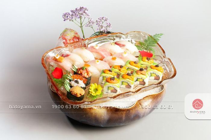Hatoyama Japanese Restaurant is often hailed as the most beautiful Japanese restaurant in Hanoi. The restaurant is renowned for its fresh, high-quality ingredients, with seafood sourced directly from Japan and delivered within 24 hours. Alongside the exclusive seafood from Hokkaido, Hatoyama uses top-tier marine products from all 28 of Vietnam's coastal regions, ensuring a truly exceptional culinary experience. At Hatoyama, chefs are not just cooks, but artists who meticulously craft each dish into a work of art. One of their masterpieces is the Kaisen Sunomono, a mixed seafood dish with a Japanese dressing. This dish captures the fresh, briny essence of the sea, allowing diners to imagine the breeze and waves of the ocean through scent alone.