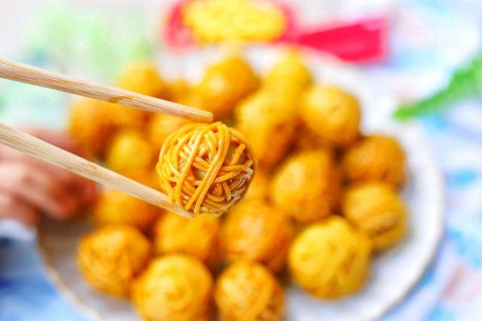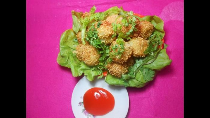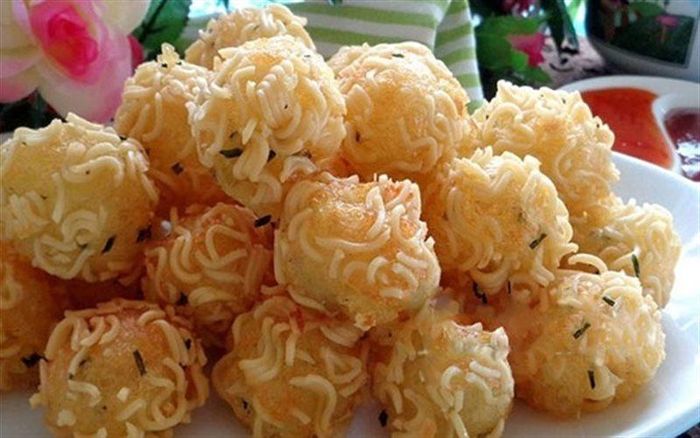Just by hearing the name, you can already imagine how delicious this dish made from instant noodles is. The ingredients for making instant noodles wrapped with quail eggs include noodles, quail eggs, breadcrumbs, and various seasonings. The combination of the creamy texture of the quail eggs inside with the crispy noodles creates a delightful contrast. This dish can also be served with different sauces, depending on your taste. You can further modify this recipe by wrapping the noodles with meat or potatoes, which also makes for a delicious variation.