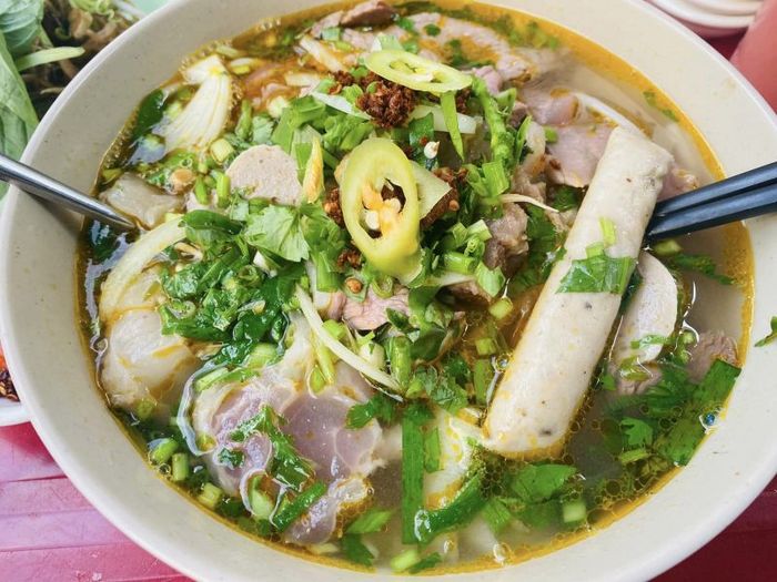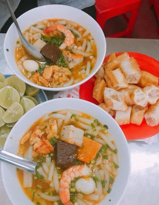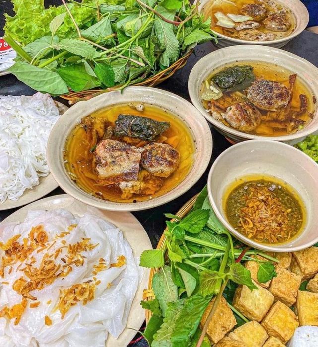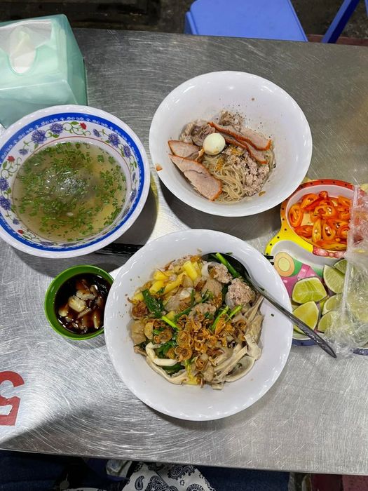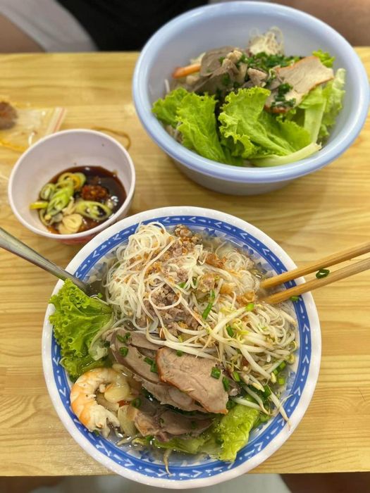 The noodle soup is perfectly balanced in flavor and hygiene, including pork sausage, pig's blood, crab paste, meatball slices, tofu, and fresh tomatoes. What truly makes this place stand out is the rich, flavorful broth made from pig's trotters and a hint of crab water. You'll be impressed by the natural sweetness of the broth, its deep flavor, and clear texture. Add pork, fermented fish sauce, chili, and herbs to your bowl and mix it together for an irresistible taste. The blood pudding here is particularly chewy, thick, and completely free from any unpleasant odors.