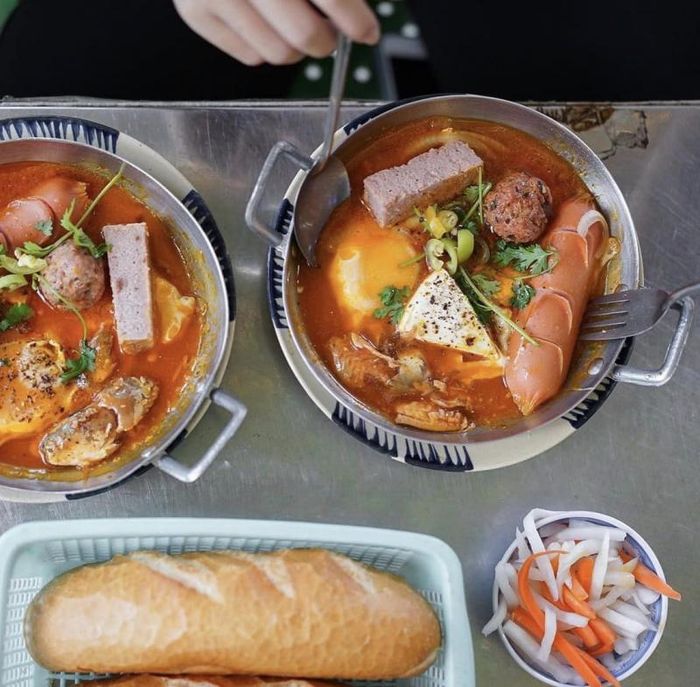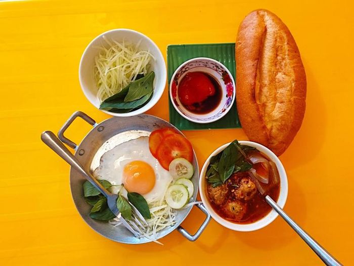 What better way to start your morning than with a sizzling, aromatic skillet of bánh mì served with a refreshing iced coffee? Head straight to Bánh Mì Chảo Xuân Lạc in District 10 for a delightful breakfast. Their special skillet comes loaded with eggs, sardines, sausage, cheese, pork meatballs, pâté, a side of pickled vegetables, and a crispy, hot baguette.