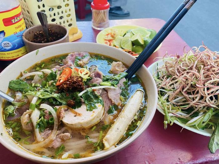 The next spot you can't miss is Phở Hữu, located on Cửu Long Street. This long-standing pho shop is a beloved spot for locals in Saigon, offering an ideal breakfast experience. The moment the bowl of pho arrives at your table, the inviting fragrance instantly tempts your taste buds. The beef and beef balls are freshly sourced each day, ensuring the highest quality without any unpleasant odors, all tailored for an exceptional customer experience.