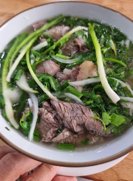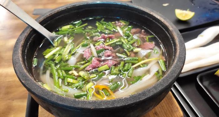 Each ingredient in the pho is carefully arranged on separate black trays, with a premium granite bowl filled with aromatic broth. The beef and herbs, along with lime and chili, are placed on long, slender trays. In the center sits the hot granite bowl, resting on a wooden base, which adds an elegant touch. The beef at Pho Bat Da is incredibly fresh, and when cooked, it remains tender, flavorful, and aromatic. The broth is subtly spiced, with a hint of ginger’s sharpness, and it's not overloaded with seasonings. It smells delicious and tastes even better, with a flavor that’s both light and satisfying. Though the prices are slightly higher than average, this place remains a favorite among families and young people alike.