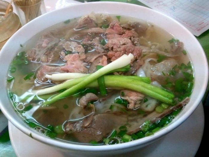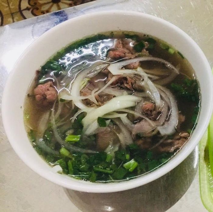 Currently, Pho Cuong has expanded to several locations in Hanoi and other provinces. However, for the most authentic and delicious experience, you must visit the original branch at 23 Hang Muoi. Situated in the heart of Hanoi, the restaurant may be small, but it compensates with its cleanliness, quick service, and affordable prices. The pho here is perfectly seasoned with a smooth, rich broth and thick, chewy noodles that stand out from other pho shops. The generous amount of green onions and onions also adds a distinctive aromatic touch to every bowl.