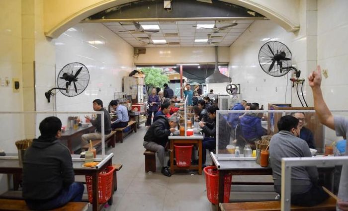 During peak hours, there is no waitstaff at Pho Bat Dan. Customers must stand in line, order when their turn comes, pay for their meal, and then carry their bowl of pho to the table themselves. Located in the heart of the Old Quarter, the restaurant has a spacious and clean environment, though it can get very crowded on weekends. Prices are slightly higher than average, and be prepared to wait. A useful tip for visiting Pho Bat Dan is to go with at least one companion—one person can hold a spot while the other waits in line for the pho.