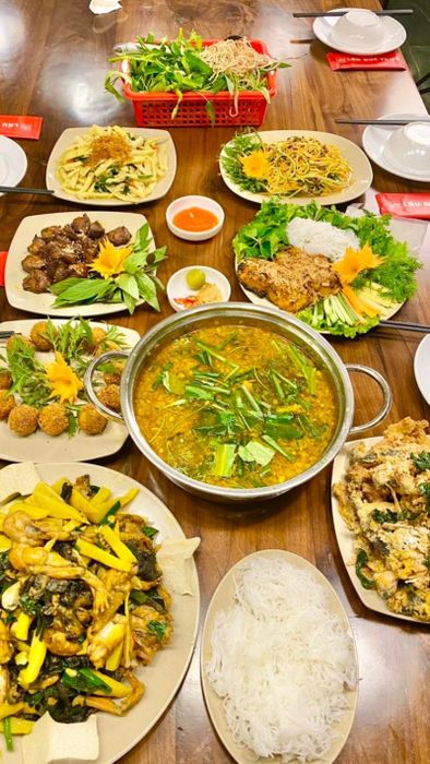 Despite being quite busy, the service at Háu Háu remains fast and friendly. It's definitely worth returning to. In addition to frog hotpot, the restaurant also offers other delicious options such as crab soup hotpot and chicken hotpot. All ingredients are prepared in advance to ensure freshness and quality.