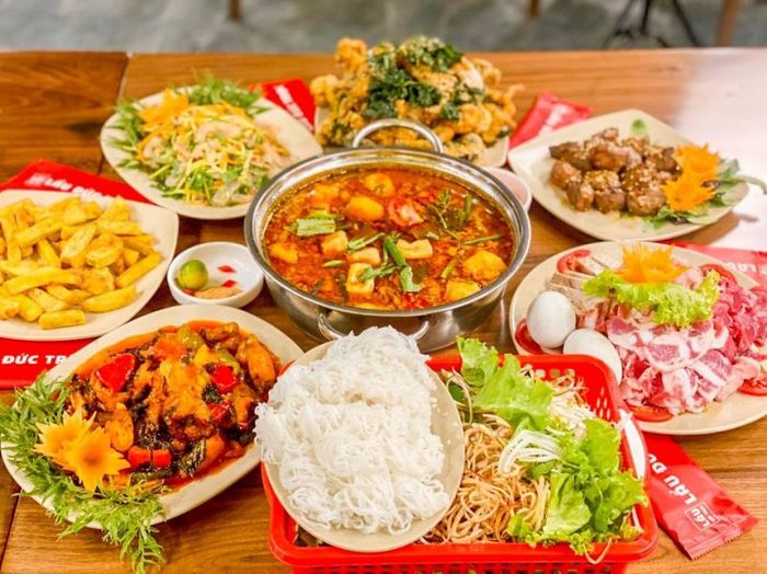 Lẩu Đức Trọc is one of the top hotpot restaurants in Hanoi, frequently mentioned for its delicious hotpot offerings. The restaurant is well-loved for its unique hotpot flavors that are hard to find elsewhere, making it a memorable dining experience. Visitors are welcomed into a spacious and airy space that blends traditional charm with modern design, perfect for enjoying a hearty meal in a comfortable environment.