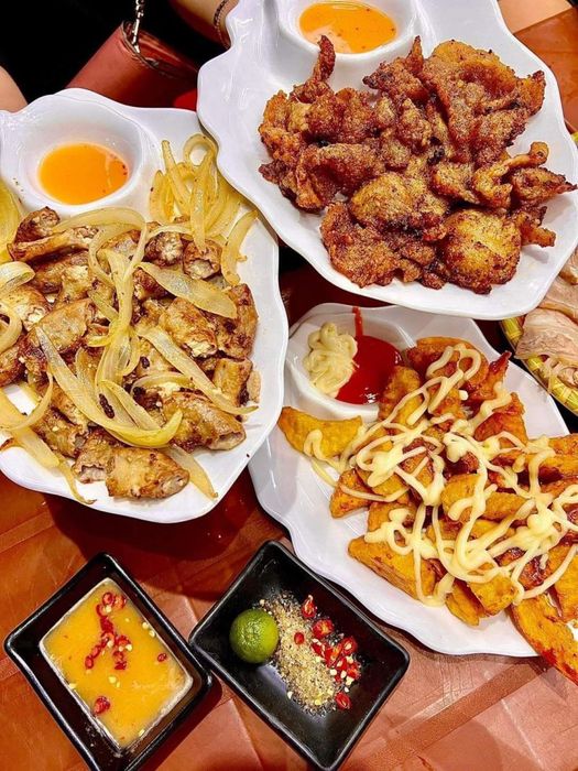 The broth is slightly spicy, while the frog meat is chewy and tender. The dish comes with a generous portion of frog meat and bamboo shoots, though the vegetables could be a bit more plentiful. If you're visiting with a larger group, you can opt for a bigger hotpot and add more dishes like grilled chicken wings, fried frogs, or spicy frog with bamboo shoots. A key highlight of Quán Eden is its affordable pricing. Alongside the hotpot, there’s a variety of specialty dishes such as steamed squid with lemongrass, sweet and sour stir-fried frog, grilled ribs, crispy chicken cartilage, ginger fried chicken, and crispy fried fish.