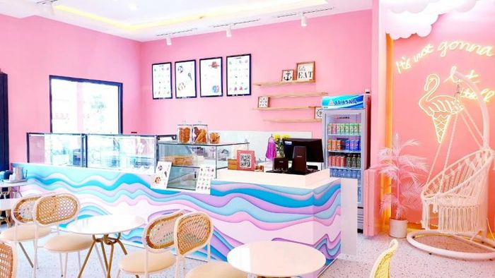 At Saigon Ice Cream Grand World Phu Quoc, choosing high-quality, fresh ingredients is paramount, but creativity is just as important. The shop offers a variety of creative flavors and designs, providing a delightful experience. The space is decorated in soft pink tones, making it not only a great spot to enjoy ice cream but also a perfect location for photos and selfies. After a day of shopping, stopping by for a cold ice cream treat is the ideal way to relax and refresh.