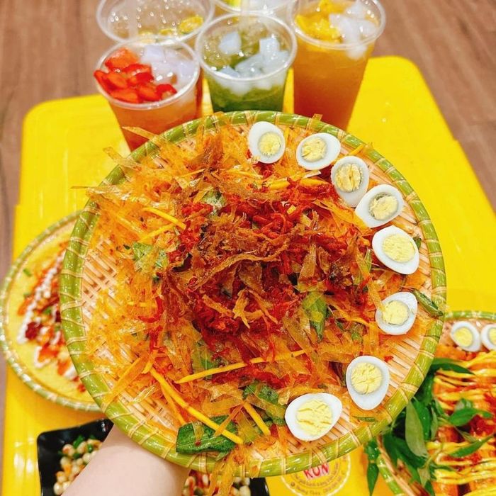 When it comes to the best places to get mixed rice paper in Thanh Hoa, An Nhien Quan is a must-visit. With a focus on “delicious, nutritious, and affordable,” An Nhien Quan is ready to satisfy the cravings of mixed rice paper lovers. The ingredients are often sourced locally, including quail eggs, dried beef, green mango, kumquat, and rice paper. A special, flavorful sauce ties everything together, making it irresistible. At An Nhien Quan, not only can you savor this signature dish, but you can also choose from a wide variety of other tasty snacks. The menu is diverse and reasonably priced, with dishes ranging from just 10,000 to 25,000 VND.
