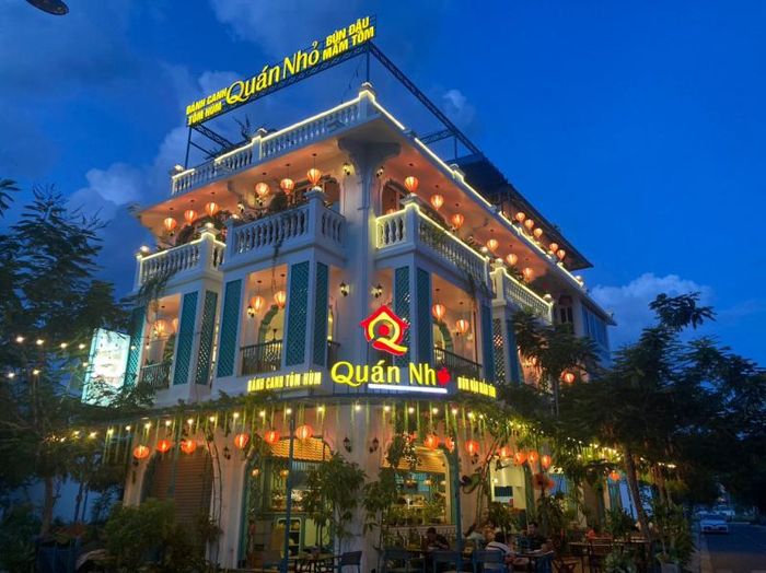 What makes this restaurant even more attractive is its beautiful ambiance. The classic architecture with the green-blue building and stunning lantern decorations create an impressive atmosphere, perfect for photo ops. The spacious seating with a park view makes it an ideal spot for family gatherings, friends, or group celebrations.