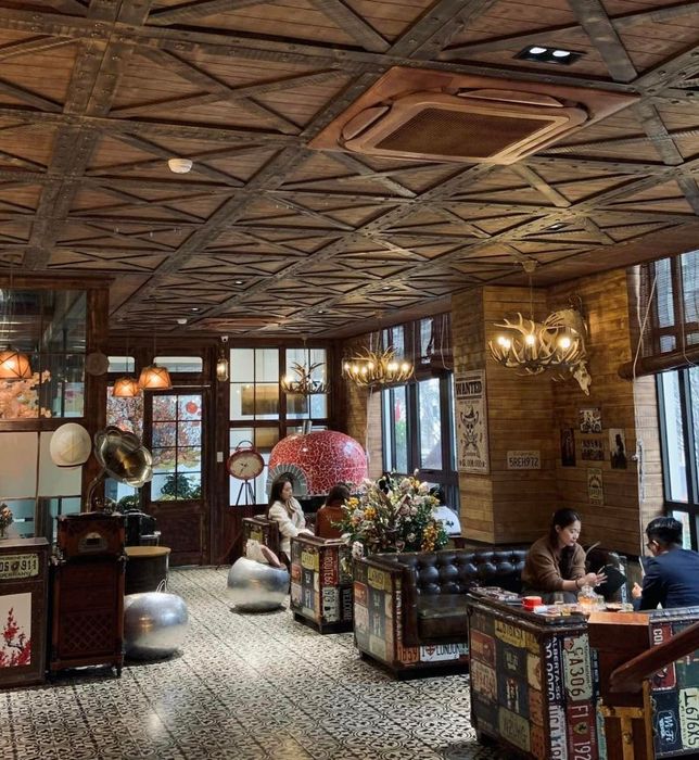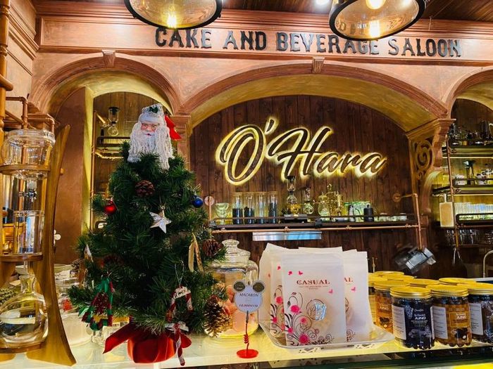 Our next recommendation is O'Hara Coffee - Cake And Beverage, a beloved spot highly praised by visitors. In the middle of the bustling city, O'Hara stands out with its stylish yet timeless atmosphere. The café’s gentle vintage look, tucked behind the vibrant Trang Leo flowers, gives off a mysterious charm that invites curiosity. Inside, the cool ambiance, with its wooden tones, filament lighting, and smooth 80s music, creates a nostalgic experience. At the same time, a modern touch is added with the bar-style ordering system, blending energy and tradition.