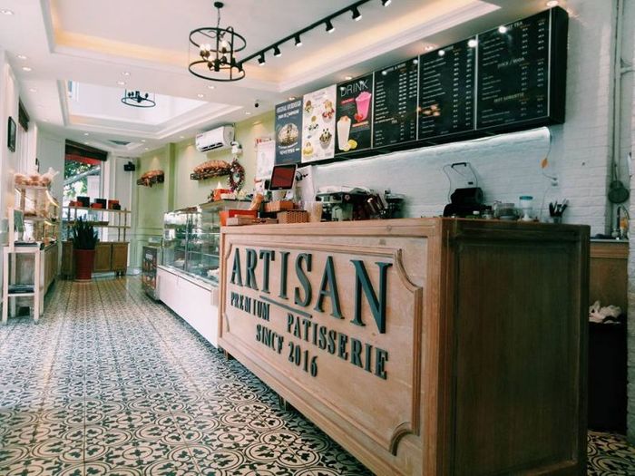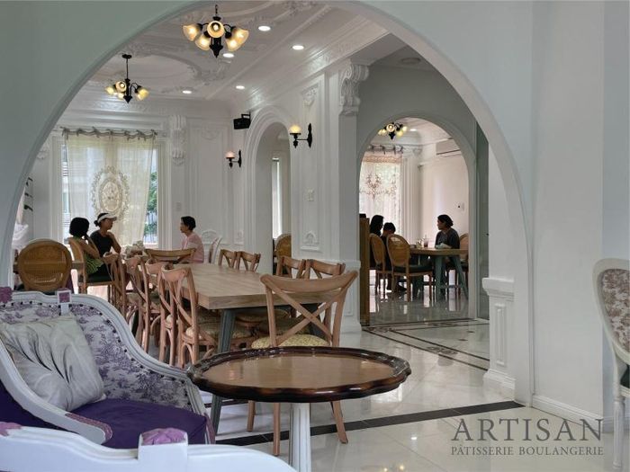 Artisan Bakery & Coffee is one of the most stylish cafes in District 7, offering a modern and luxurious view. Designed in a Western style, the cafe overlooks a villa with a stunning swimming pool. Sitting on the upper floor allows you to enjoy views of the city and this unique architectural villa. Everything in the cafe, from the space to the furnishings, exudes a high-end, contemporary vibe, making you feel like you've stepped into a fine dining restaurant.