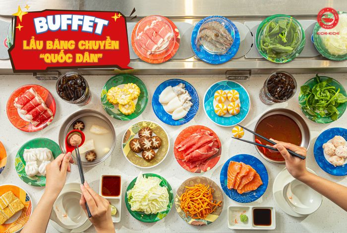 The highlight of this Cau Giay buffet restaurant is the unique conveyor belt serving style. Diners can freely pick any dish they like from the conveyor belt. Whether it's American beef belly, beef tenderloin, shrimp, crab, squid, scallops, octopus, ... you can dip and indulge until your heart's content.