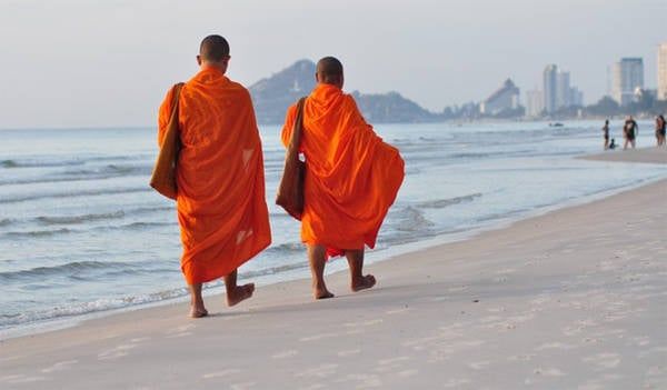 There are certain rules when interacting with Buddhist monks in Thailand. You'll often encounter monks on the streets, and they're usually quite approachable. Women should never touch monks or their robes, even when outside the temple. If a woman accidentally touches a monk, the monk will need to perform a cleansing ritual. If a woman wants to give something to a monk, it's best to place it on the ground or hand it to a man to pass it on to the monk.