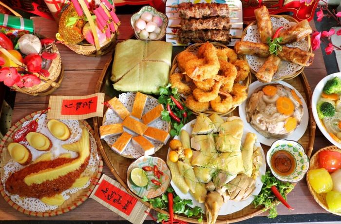 Traditional Tet dishes such as square glutinous rice cake, braised pork, boiled chicken,... are indispensable on Tet day (Source: Internet)5. Tet Gifts