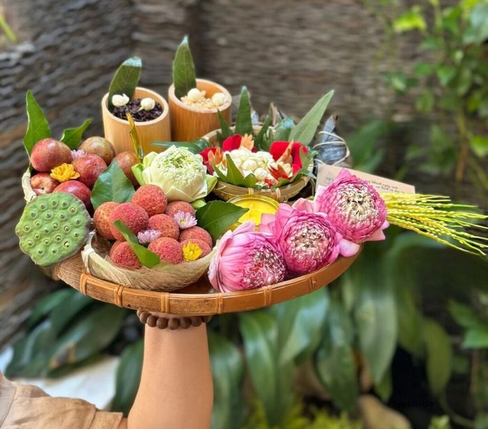 A Tet offering tray overflowing with fruits and ritual flowers is a clear expression of gratitude to deceased relatives (Source: Internet)2. Tray of Five Fruits
